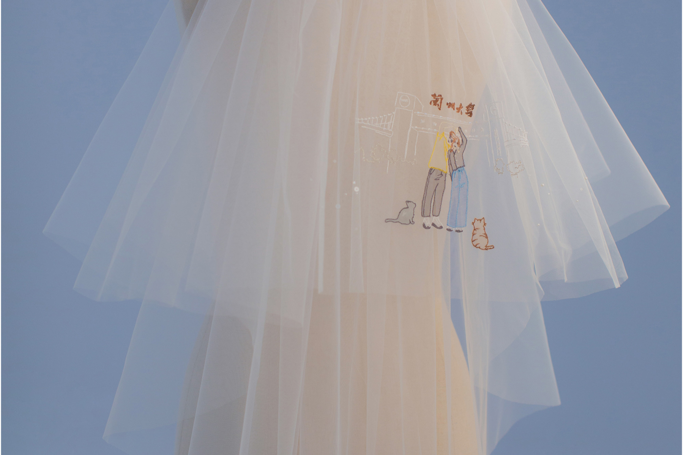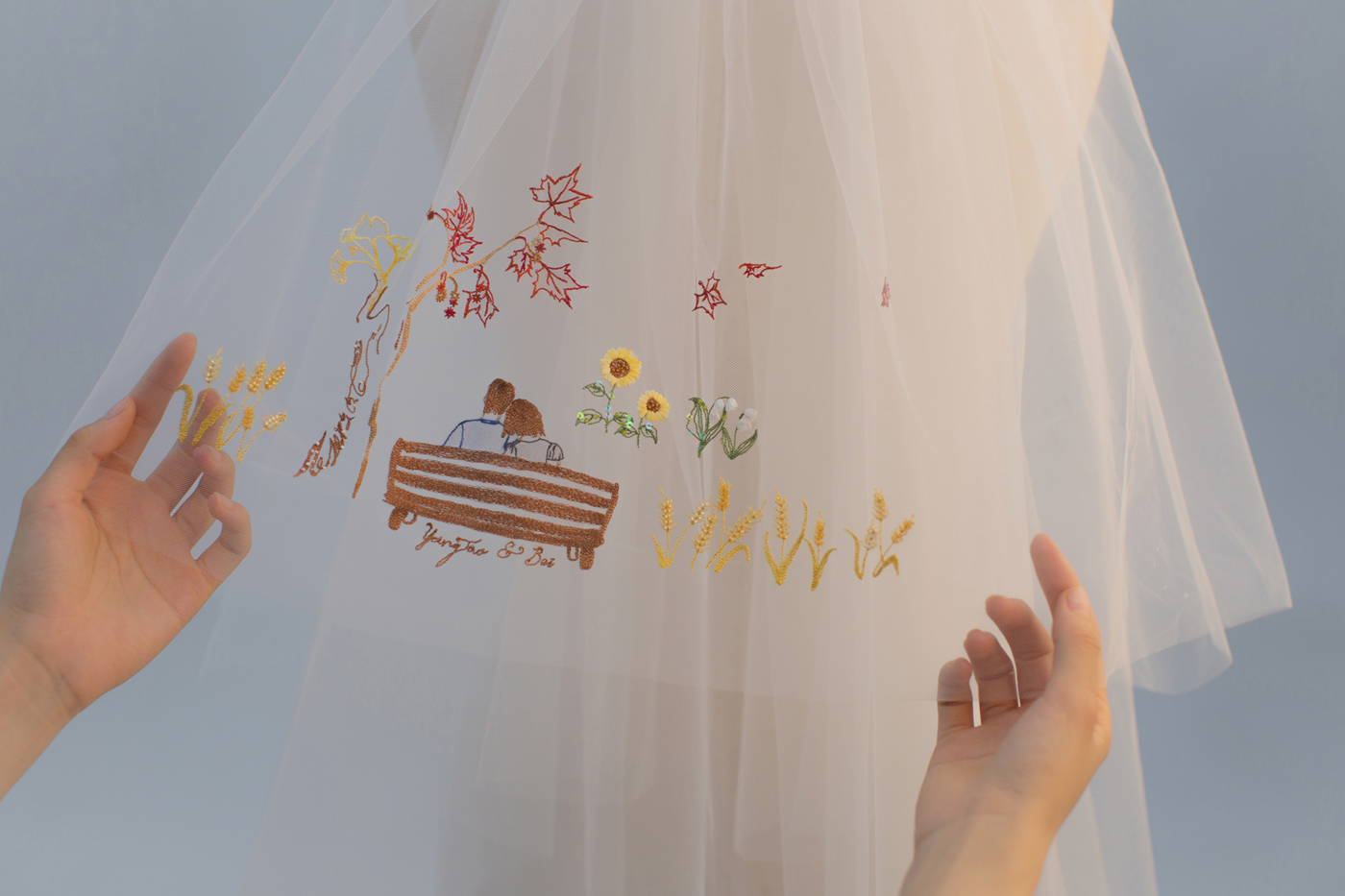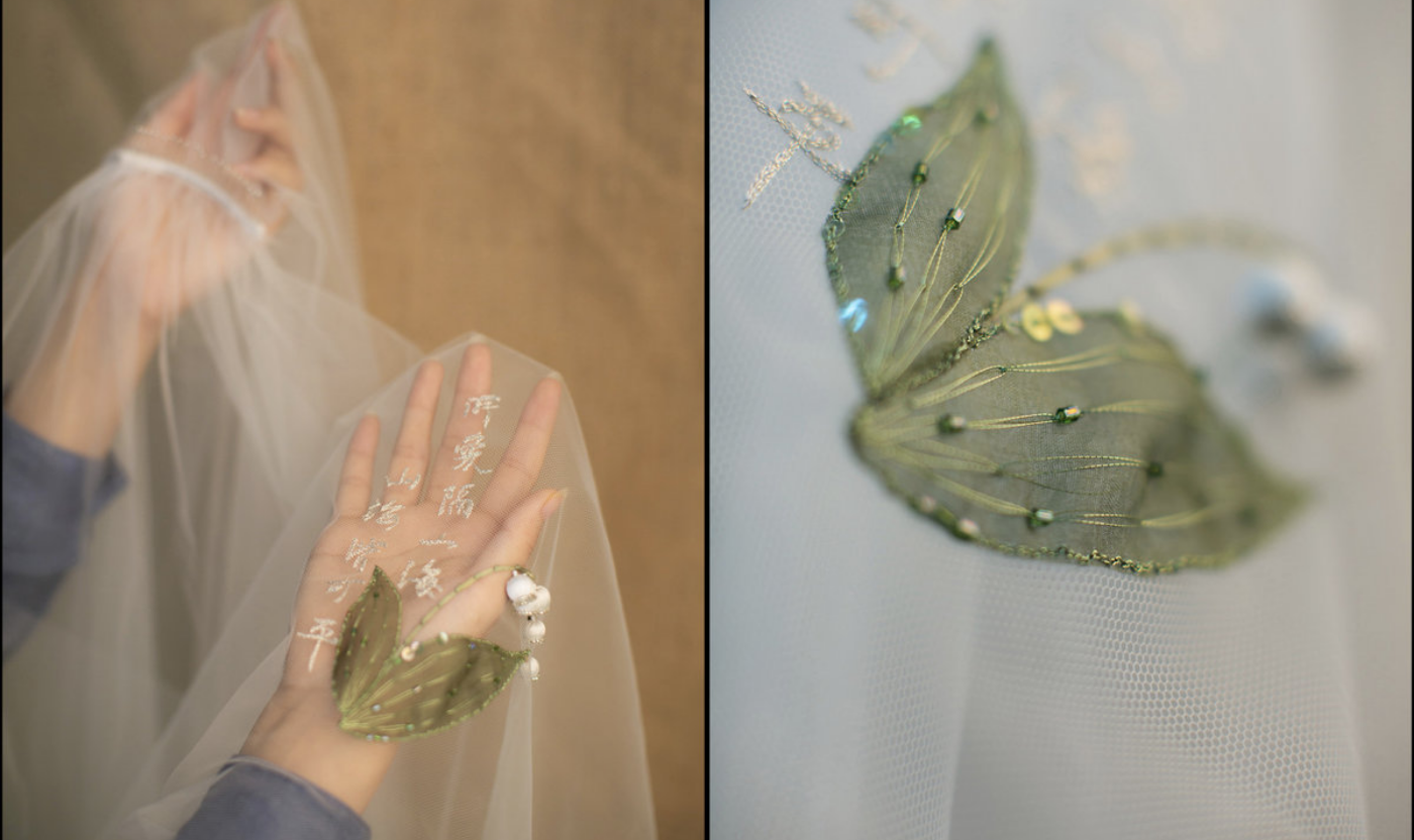 他们在元宵九曲中相遇 鹿和燕子代表他们彼此 添加了元宵的灯笼和九曲元素 燕子带来的 车前子&车厘子 是他们提前给宝宝取的名字 一些美好的寓意 都暗暗藏在这一块头纱里。🦌[更多…]