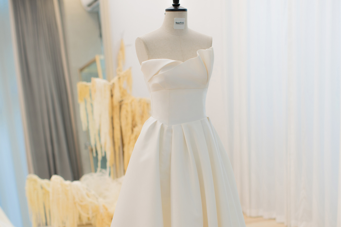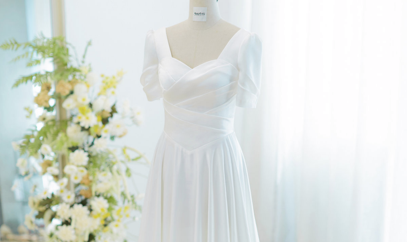 【Design for Xin👰🏻】 用斜纹缎塑造挺括的线条 不规则的抓褶让缎面灵动起来 提高的腰线改变比例 让新娘的身形纤细修长… 这里每一个细节都为你而来🕊 今日是你的婚礼,所有期待和美好 都会在这一天如约而至 ✨🌿[更多…]