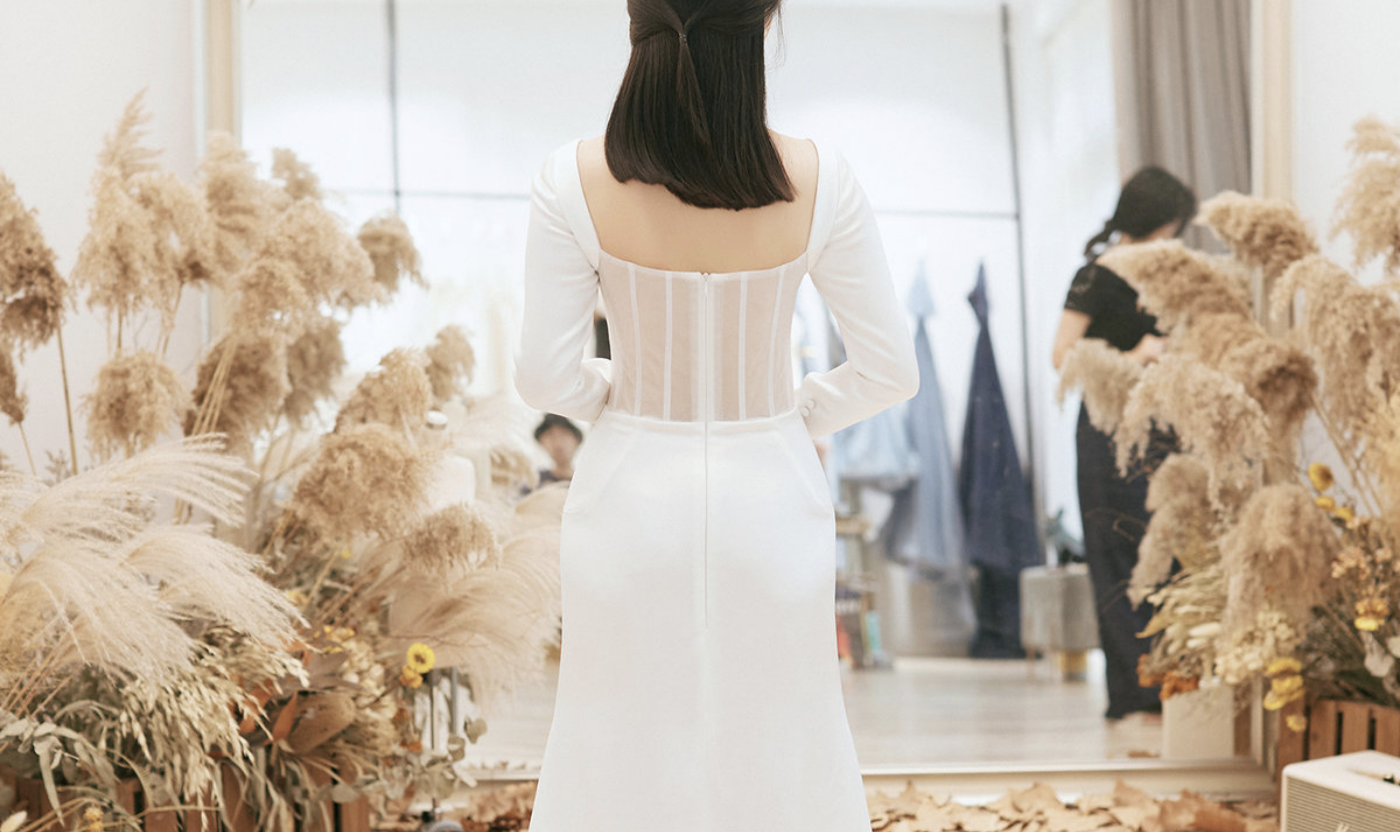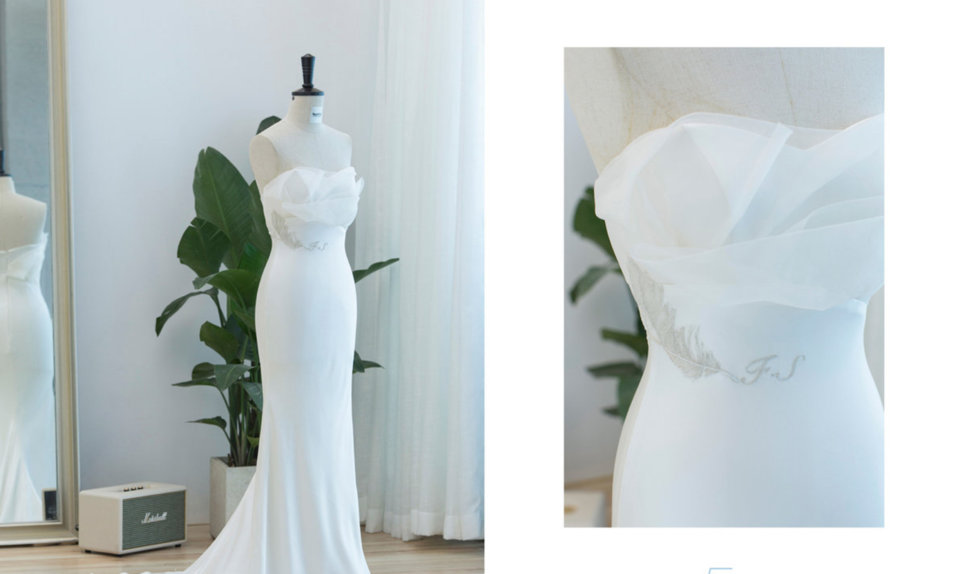 对自己的婚纱质感有要求的你 跟我们沟通着每一个细节 最后是真丝的质感取得你欢心 真丝勾勒出的线条设计 珍珠和真丝都是温润的白色 经典的极简的设计 但也保留着强烈的高级感 🤍 [ Design for yang ]🍃[更多…]