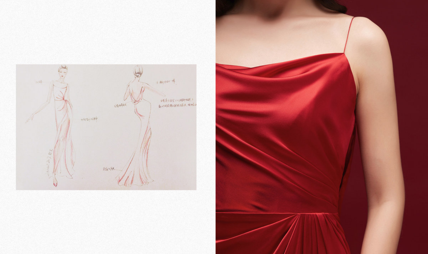 【SHARON】 女神Sharon为婚礼上First Dance特意准备的礼服 腿部的开叉为跳舞留下肢体活动空间 丝绸面料会在聚光灯下显现出面料的质地 醇红色的光泽也会映衬出你今晚的主角光环[奥特曼] #原创婚纱定制##深圳礼服定制# [更多…]