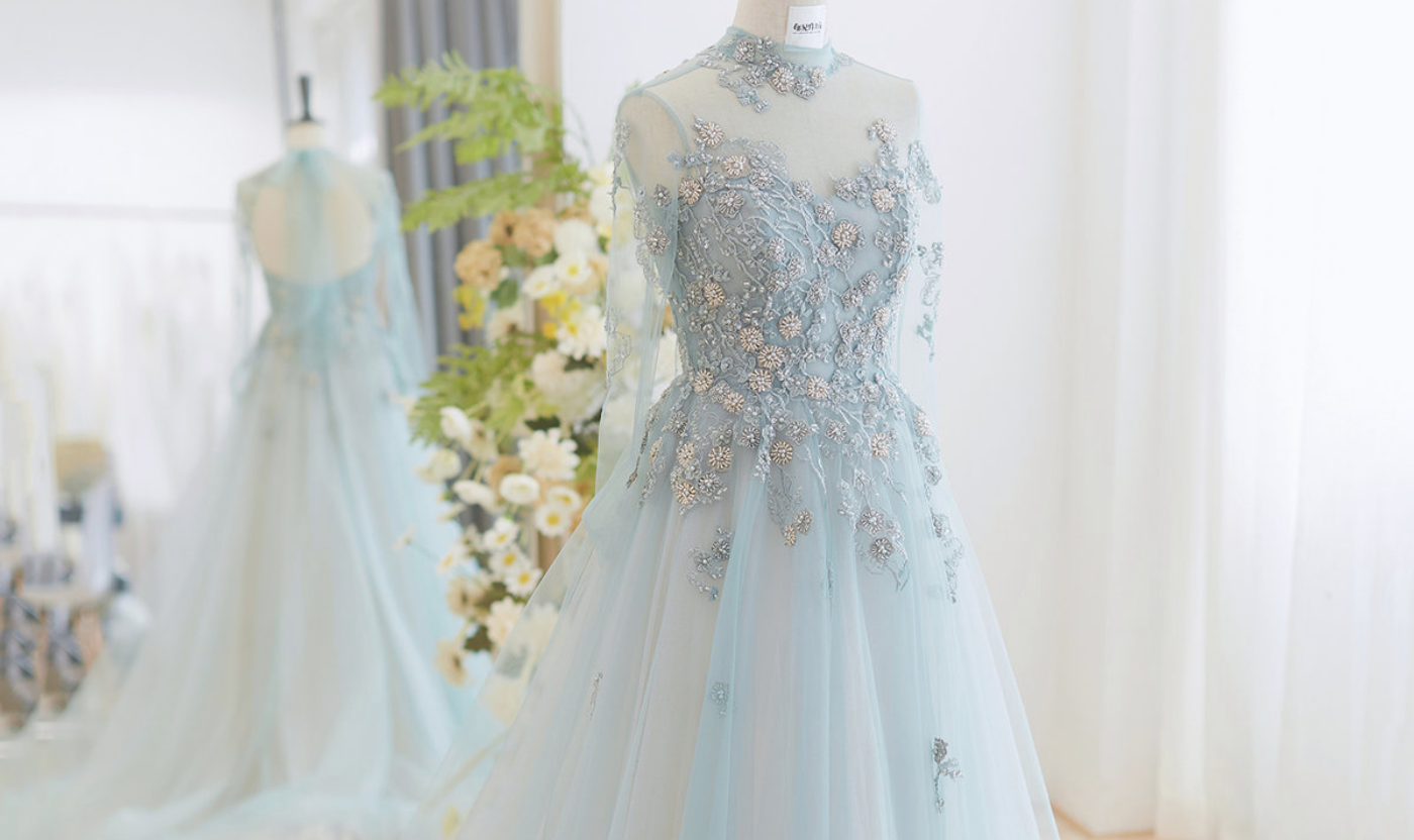 异地远道而来的你 每一次和你见面都格外珍惜… 我们在琉璃海的基础再设计 可拆卸的蓬蓬裙像一大片翻滚的浪花 押褶网的纹理夹杂着浪珠… 真丝A摆裙衬托少女的气息🕊 今天是你的大日子 希望这属于你的琉璃海能常伴你左右 从婚礼到你生活里的重要时刻 🧡[更多…]