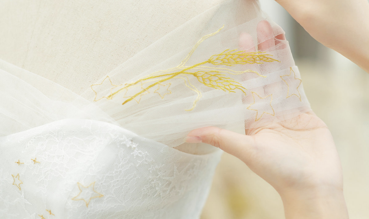 【 星筑 】 为她第一份事业开业定制的裙子🕊 我们用刺绣笔触在桑蚕丝上描绘星月, 把星斗成串,让所有的美好串联、 在真丝面料里熠熠生辉。 愿今后披荆斩棘, 心中有爱的星辰都与你相遇 ! 🌟[更多…]