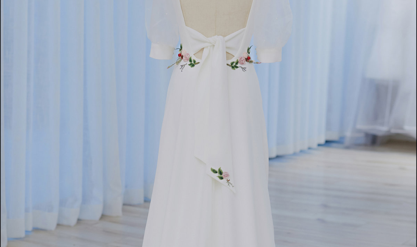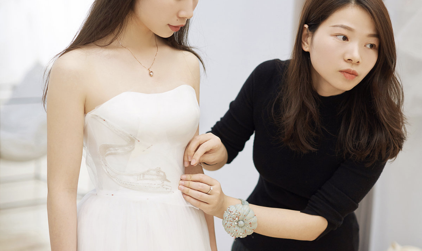 DESIGN FOR MA 专程佛山来找我聊关于她的婚纱 第一印象的温柔也都揉进了婚纱里 大面留白的简约设计 在细节处去点缀 东方气质的刺绣 留下无尽的奇思遐想。 #婚纱高级定制#[更多…]